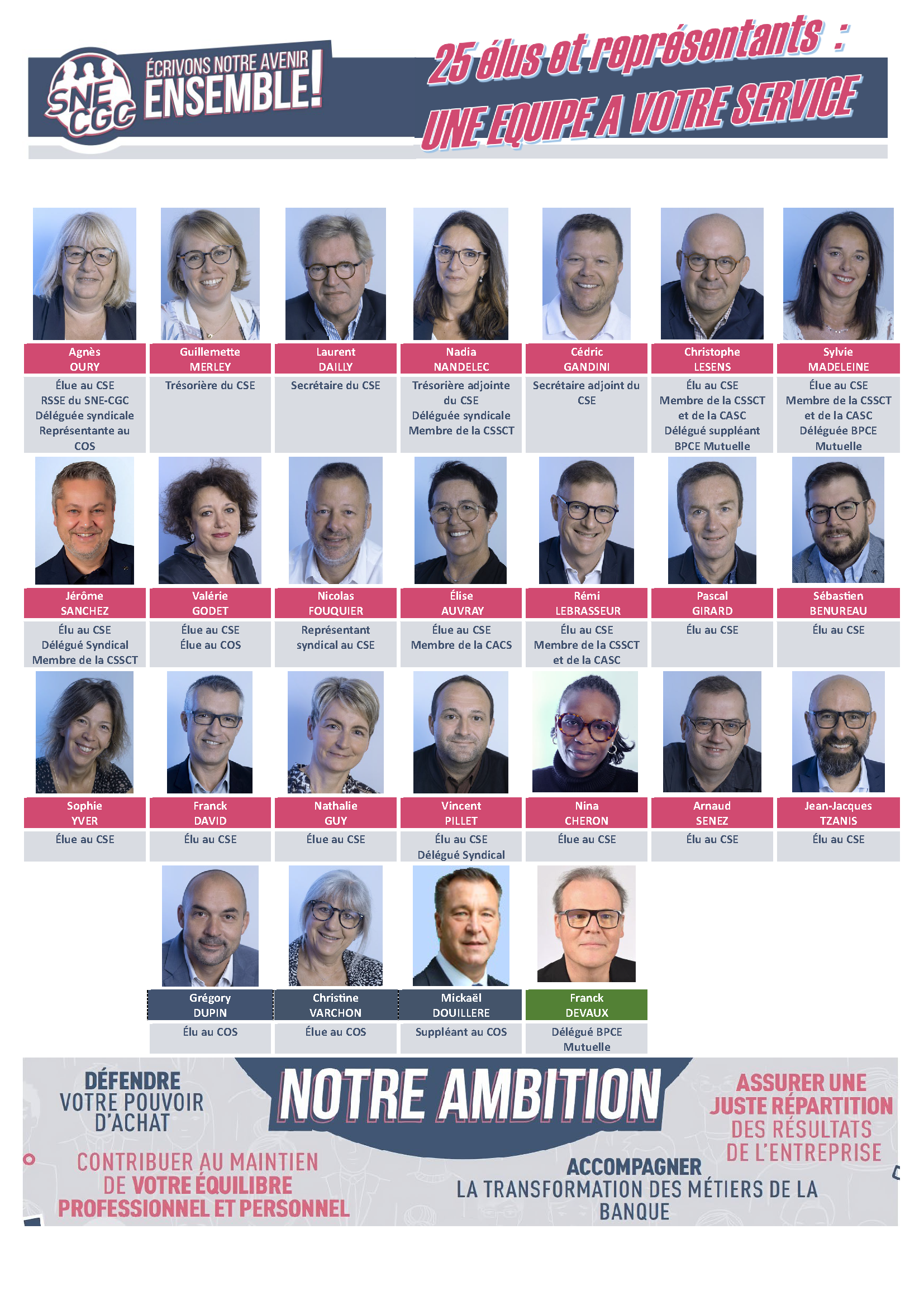 - Des représentants locaux investis dans les instances nationales travaillant en partenariat avec les 7 autres Caisses régionales dans lesquelles le SNE-CGC gère les œuvres sociales